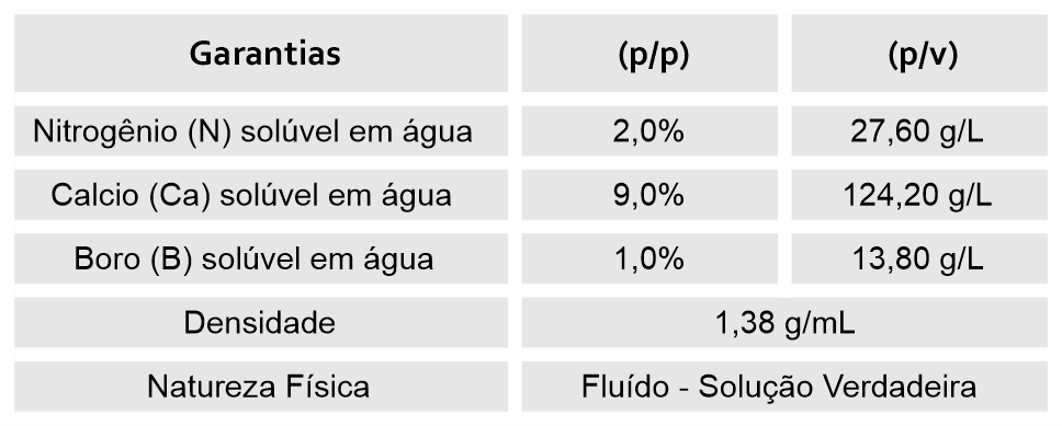• Fornece Calcio (Ca) na forma disponível para absorção, aumentando sua mobilidade nas plantas.