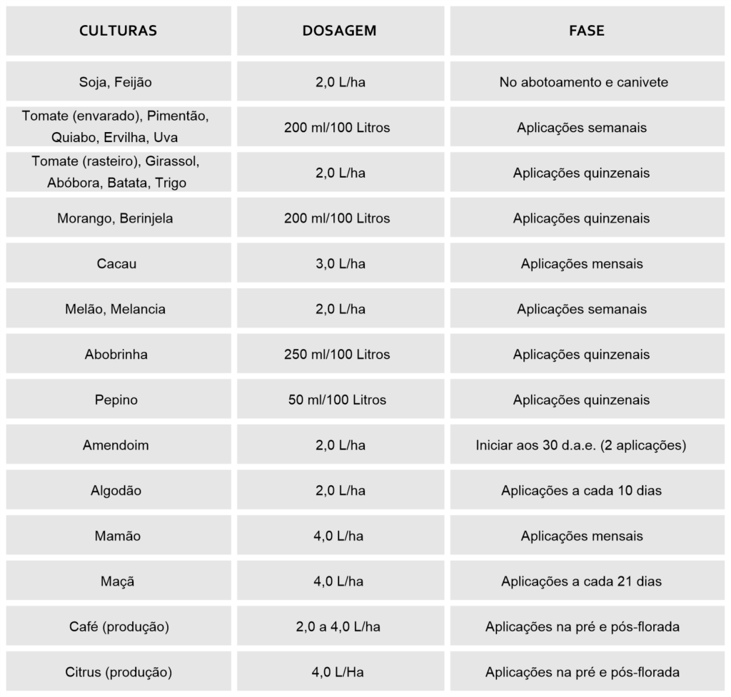 + Fruto é um fertilizante foliar formulado para atender a demanda fisiológica das plantas sendo imprescindível para melhorar a fixação de flores e frutos, além de evitar a ocorrência de distúrbios fisiológicos.